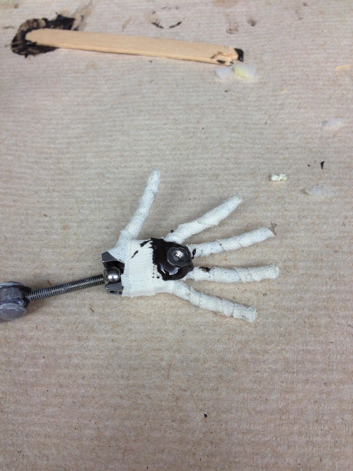 embedding a small hex nut into his hand so i can secure a little camera to it while shooting
